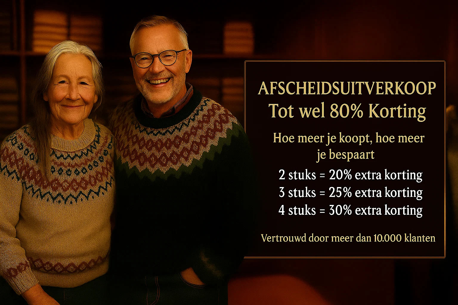 Ontdek mijn laatste uitverkoop: authentieke IJslandse breikleding, met liefde gemaakt en doordrenkt van warmte en het erfgoed van drie generaties. Elk stuk is een afscheid, een herinnering en een eerbetoon aan de warmte die we samen hebben gecreëerd.